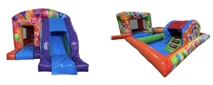 The Party Box Jump with Slide is perfect for older children who want to bounce, jump and slide throughout the party. With its bright balloon-themed artwork and built-in slide, it creates an exciting inflatable experience that keeps children entertained for hours.